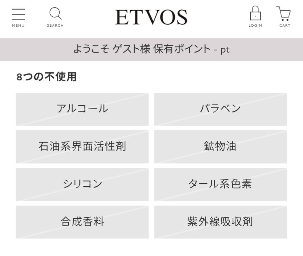 ETVOSのコスメは、よく入っているこちらの成分が入っていません。