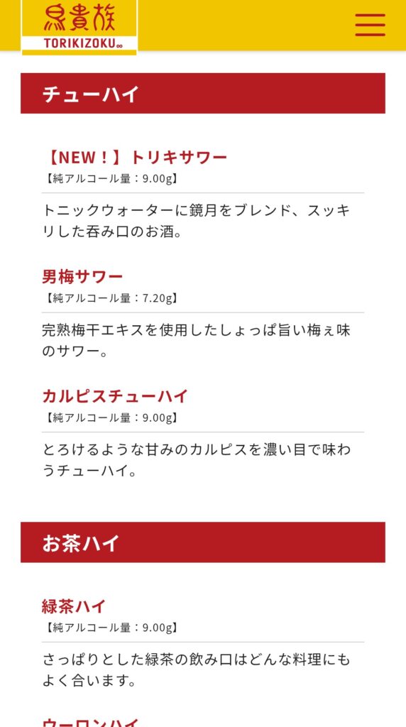 それは「メニューにアルコールがグラム数で記載されている」というところです。